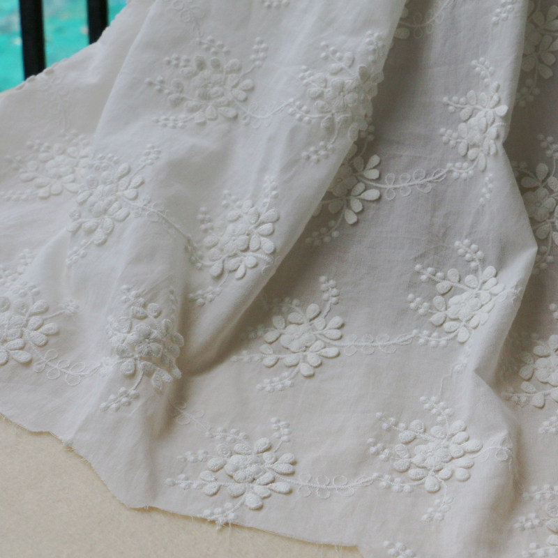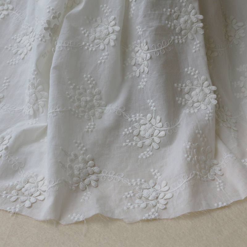 White cotton fabric three-dimensional cotton embroidery cotton skirt girl clothing fabric light, soft and close-fitting