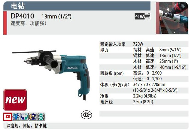 Original Makita electric drill DP4010 household electric drill screwdriver electric screwdriver 720W