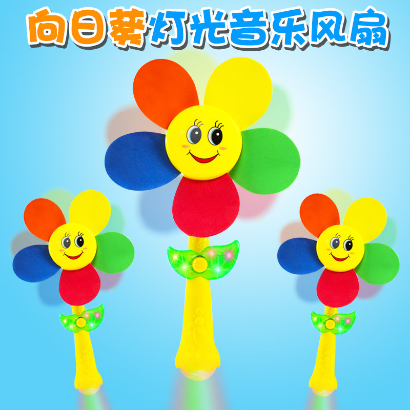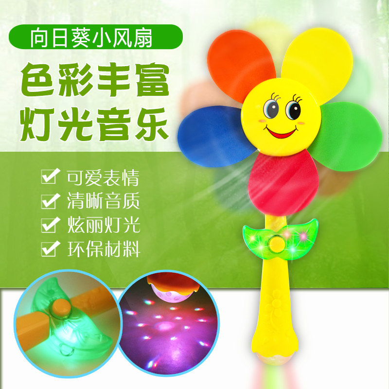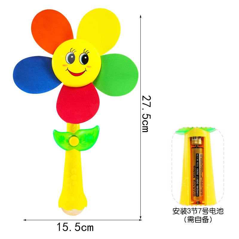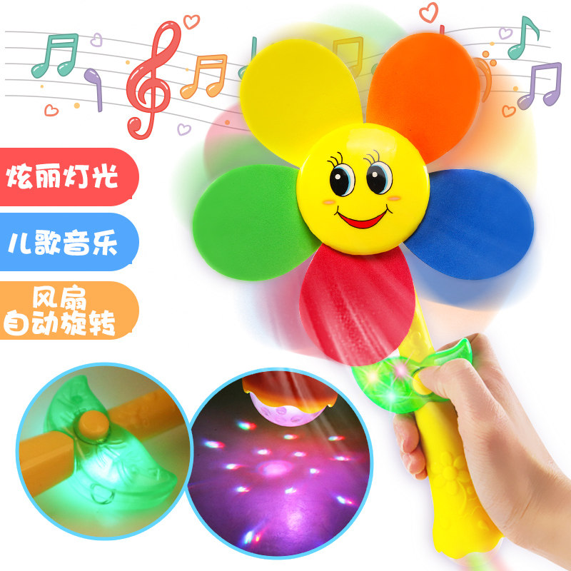 Children's electric fan sunflower windmill flash windmill with lights projection toddler toys plastic rotating colorful