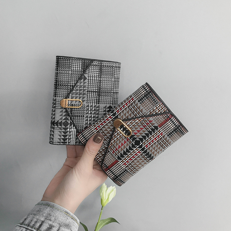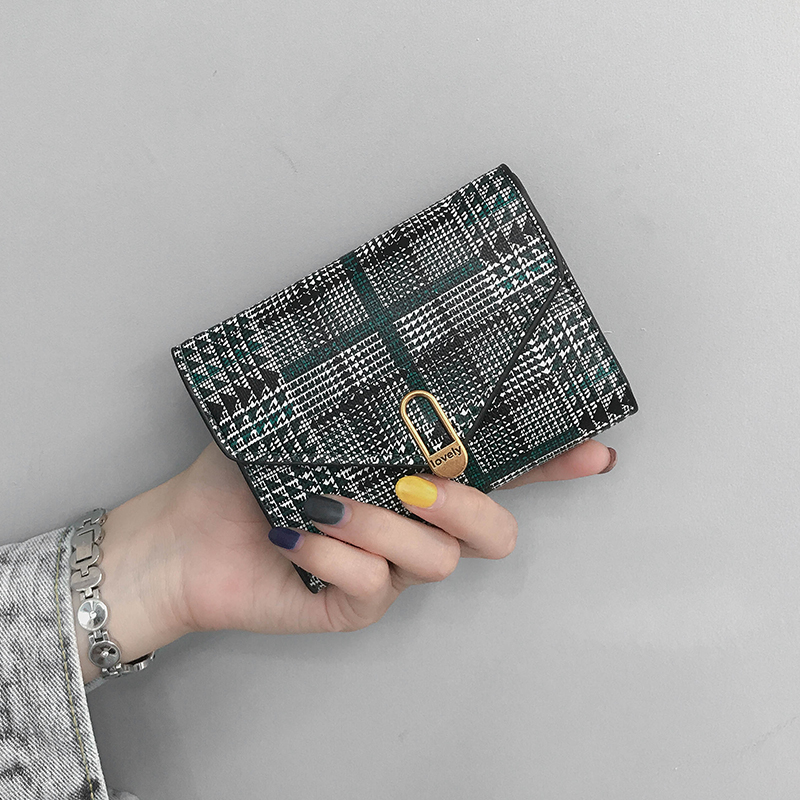 2021 new small wallet women's short Korean version of thin hipster personality fashion thousand bird grid three folding women's change clip
