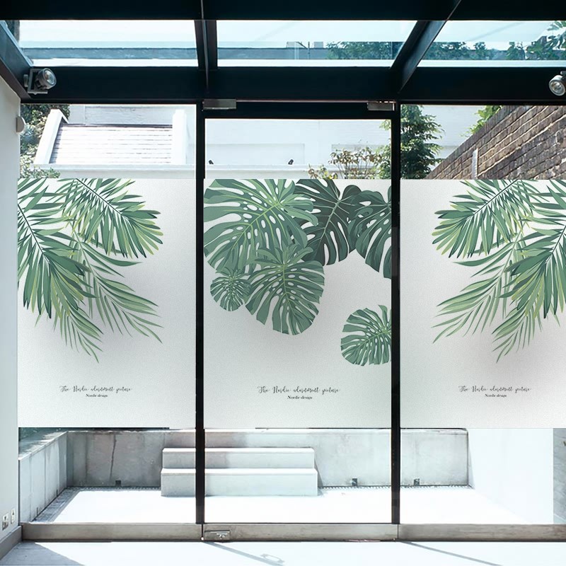 Nordic Plants Static Frosted semi-permeable glass Cling Film Windows Shading Glass Stickers dressing room Decorative Window Floral Paper