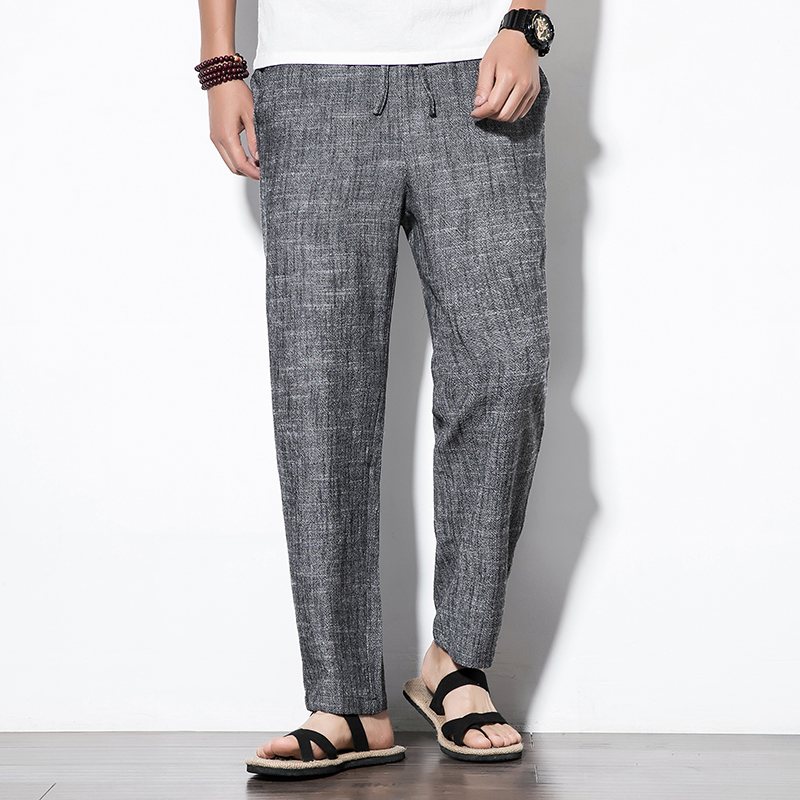 Chinese Wind Men Cotton and Less Pants Summer Less Lin Men Trousers Small Cotton Men Groups