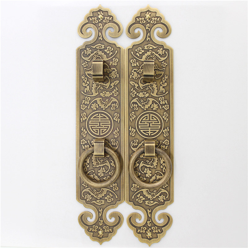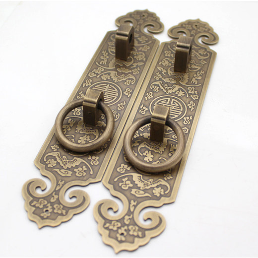 Chinese style cabinet door handle antique pure copper vertical strip handle wardrobe overall cabinet bookcase door furniture hardware copper accessories