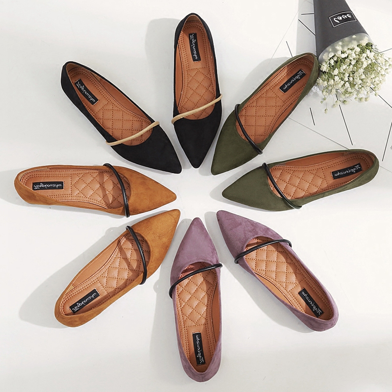 Hong Kong 2020 new wave Korean version 100 lapped suede flat bottom single shoe light mouth flat heel fine with pointed flat bottom shoes female summer
