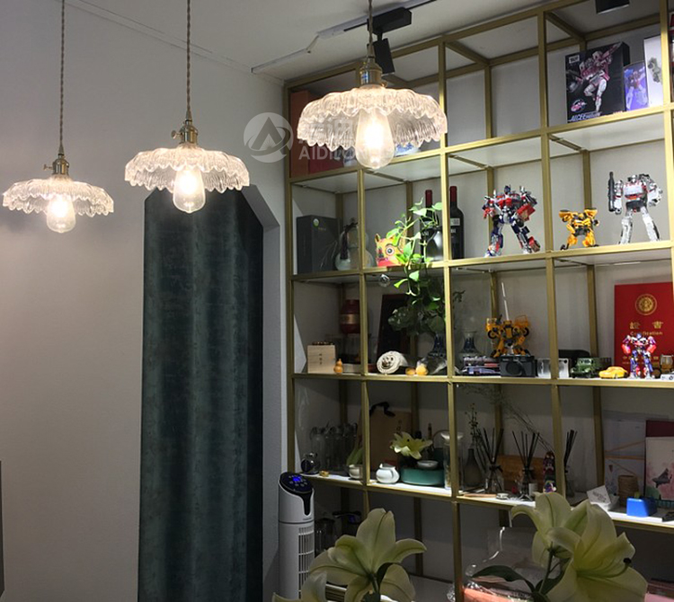 Ins style Japanese Nordic single-head glass flower chandelier Retro brass small fresh bar porch dining chandelier