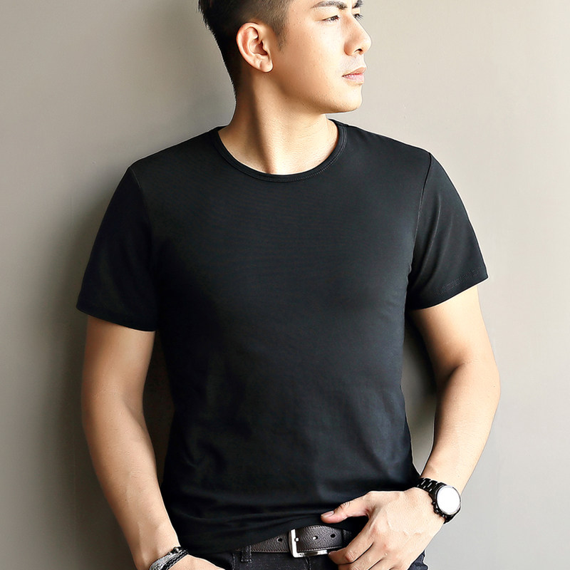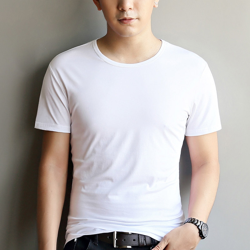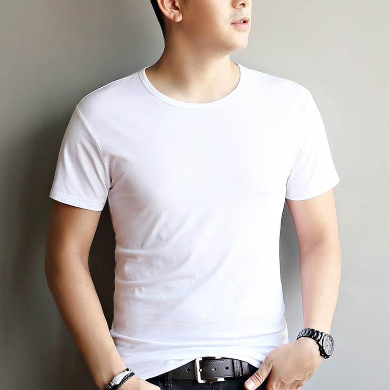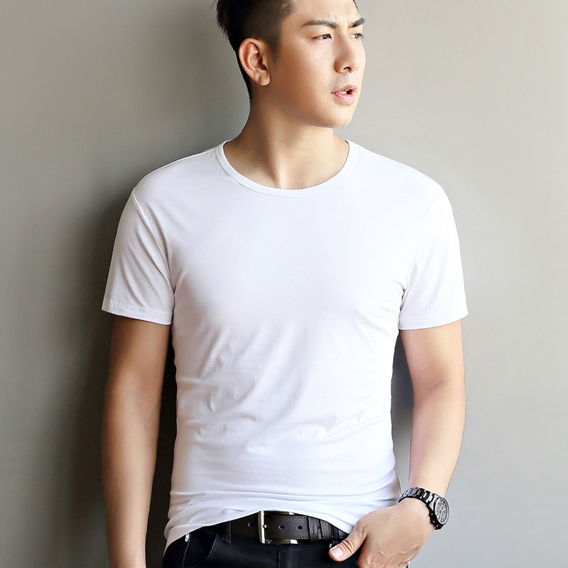 2022 short sleeve t-shirt male round neckline with summer clothing pure white pure cotton upper clothes men's undershirt half-sleeve trend