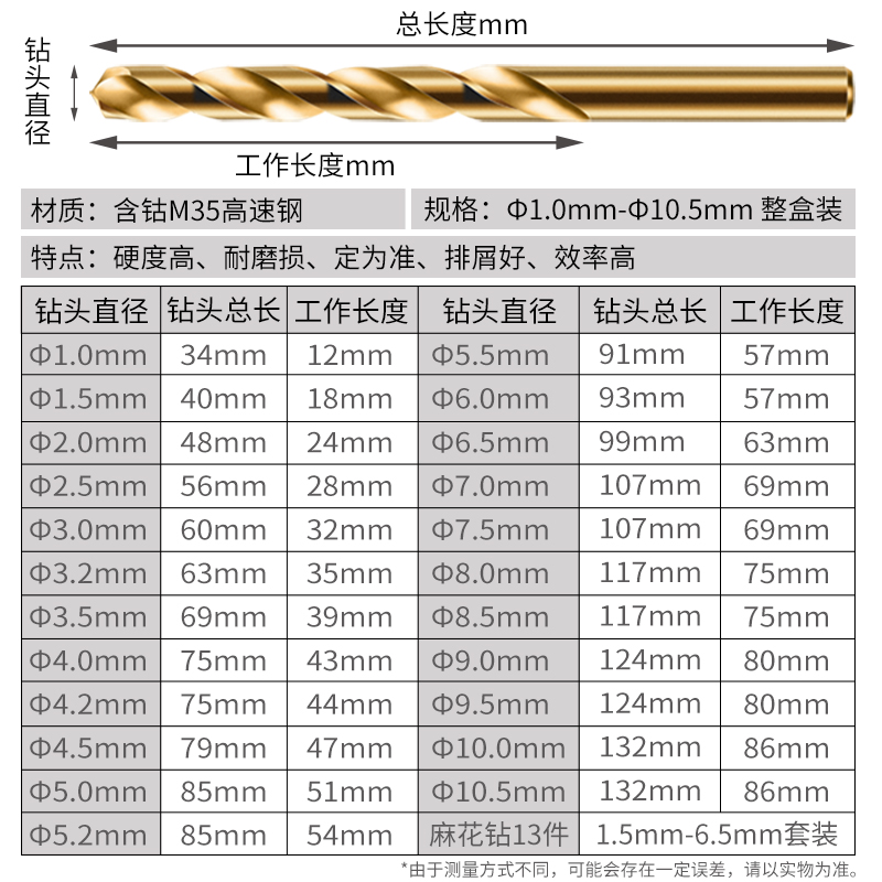 1 5-6 5mm M35 twist drill 13 pieces 1 0mm M35 Twist Drill 10 boxes 1 5mm M35 Twist Drill 10 boxes 2 0m