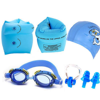 Powder Cap Red Water Cuff Pink Swimming Goggles Nose Clip Earplugs Pink cap Red Water cuff Crab Nose Clip Earplugs Blue Cap Blue Fish Swimming Goggles Nose Clip Earplugs Blue Cap Blue Water Cuff Blue Crab Mirror