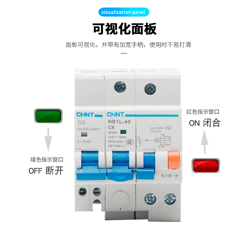 Chint leakage circuit breaker with shunt release NB1L-63 S9 1P N 230 400VAC C50A 63A
