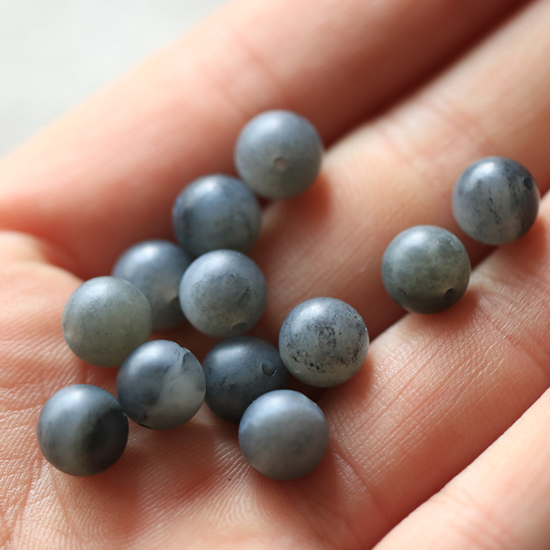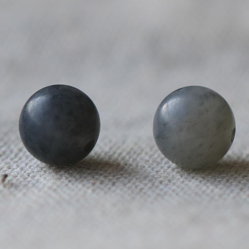 Natural Xinjiang Hetian Jade beads Blue and white seed material loose beads Single jade round beads Wen play diy hand string with beads