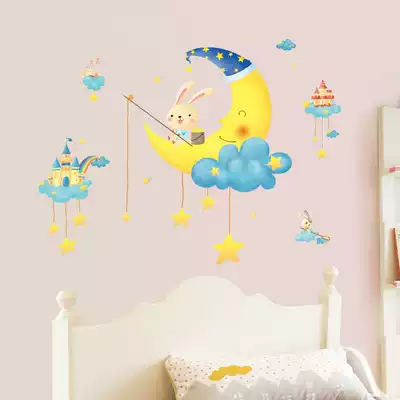 Cartoon moon rabbit sticker Bedroom warm wall decoration living room creative wall sticker self-adhesive painting can be removed