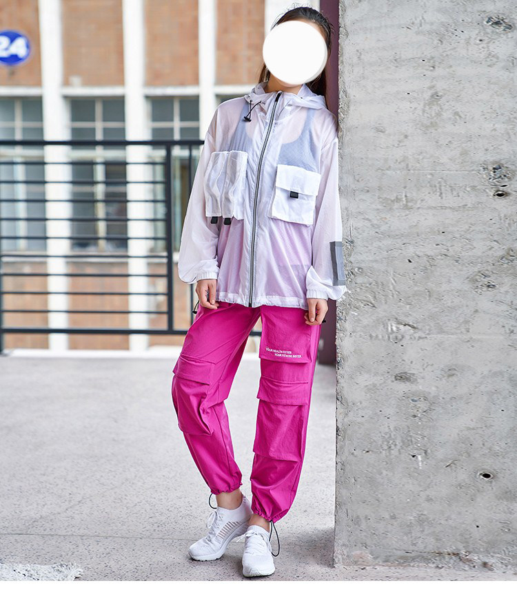 FITSIS Multi-Pocket Fashion Out Street Rose Red Straight Drum Running Casual Bouquet Fitness Sports Pants Private recommendation