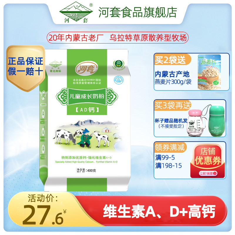 Hetao primary school students high calcium milk powder Children's growth AD calcium milk powder Teenagers morning and evening meals independent packaging