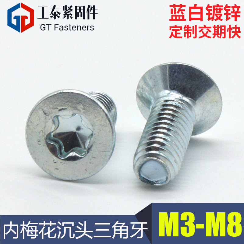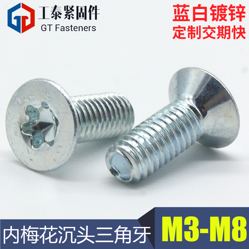 Inner plum triangle tooth self-locking screw M3M4M5M6M8 countersunk flower type inner hexagon self-tapping locking screw