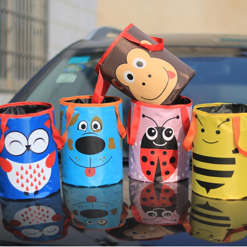 Folding-in-car trash can creative cute car with suspended portable mini small containing bucket bag