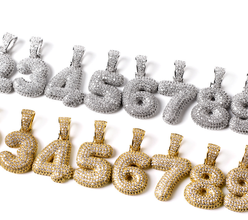 Ice out bubble number Pendant Silver Bubble Number Necklace Men and Women Couples Clavicle Chain