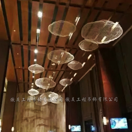 Ogilvy engineering Cloud hanging Hotel club sky hanging Soft decoration art hanging ceiling Woven mesh water drop decoration