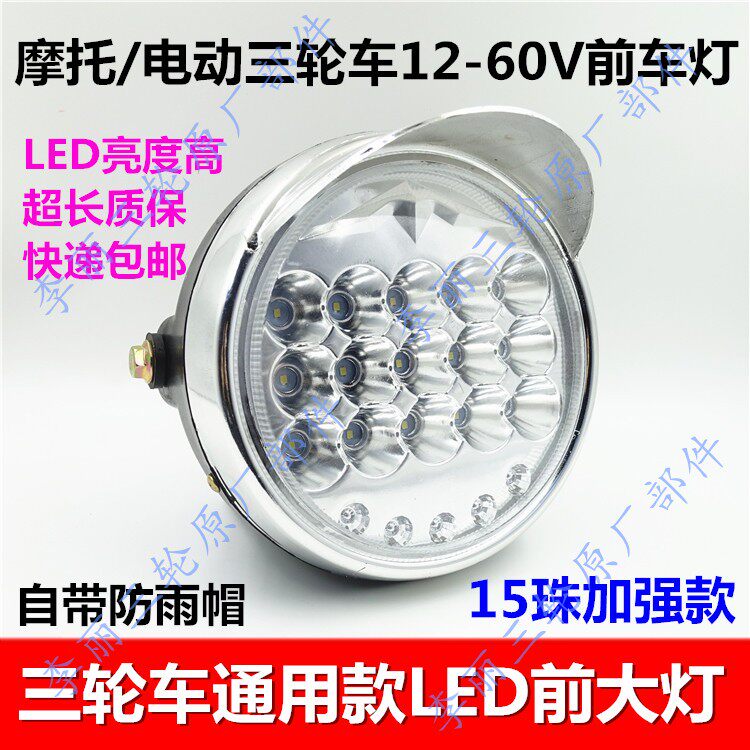 12V pedicab quality round front headlamps 12-60V universal LED living room light 15 beads common section 12-60V Universal LED living room light 15 beads reinforcement 12-60