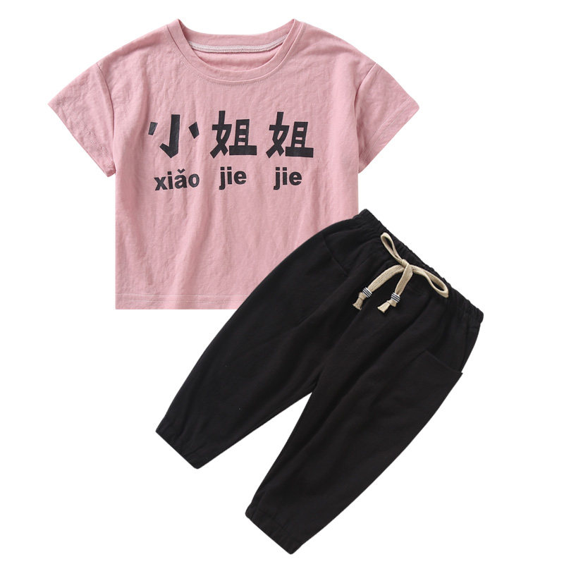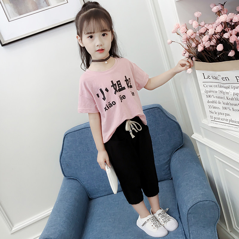 Girl's summer clothes suit baby 2 4 3 5 4 6 50 6-8 6-8 year old Primary school girl's foreign short sleeve clothes damp