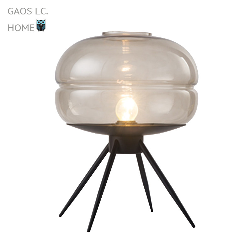 Table Lights Nordic Ins Creativity Living Room Industrial Wind Tables Lamps Iron Art Bedroom Bedlights Glass Lampshades Tobacco Grey Dry