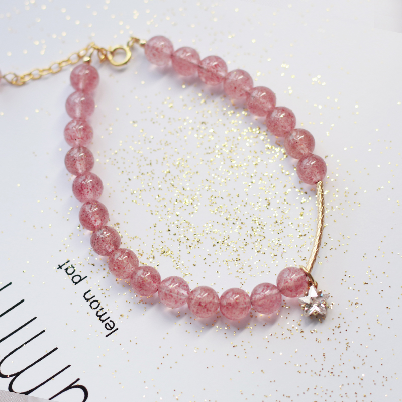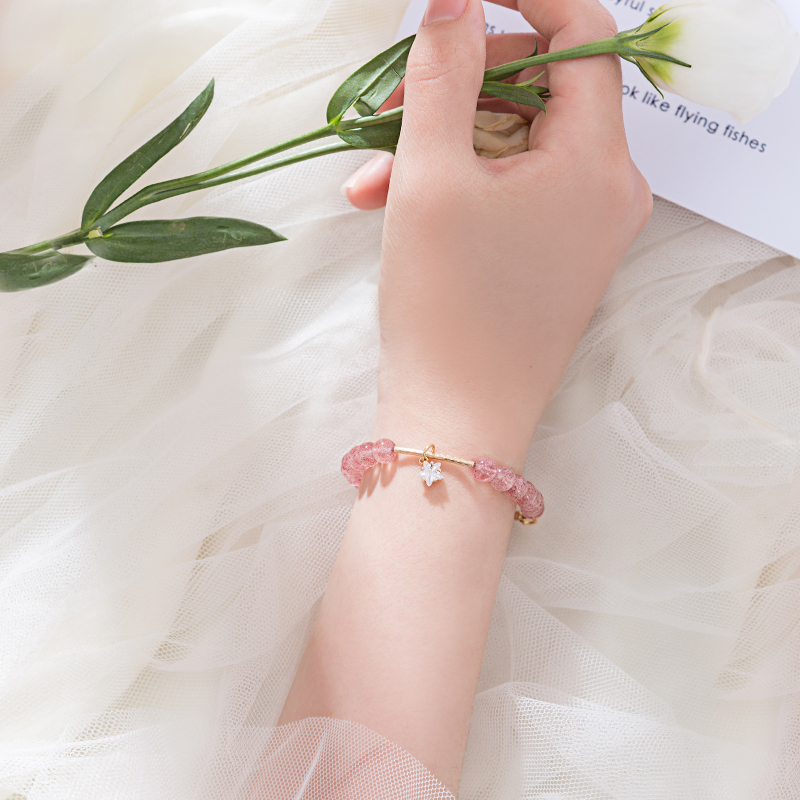ins wind strawberry crystal hand alchemy natural powder crystal lukewarm atmosphere pure silver Korean version of the student Mori
