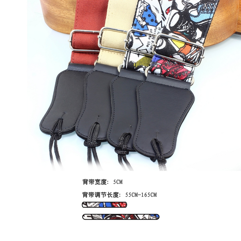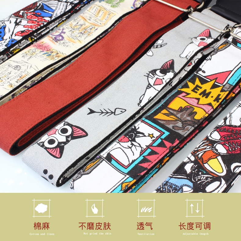 Guitar Strap Folk Electric Guitar Strap Wooden Guitar Bass Denim Cotton Linen Personality Graffiti Shoulder Strap Leather Head