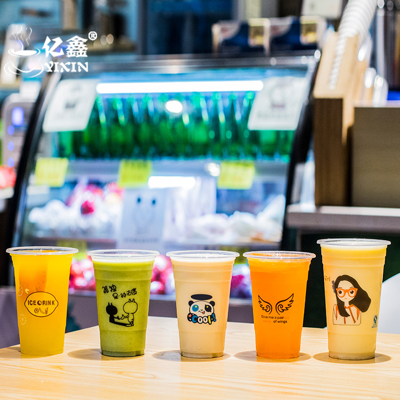 Milk tea cup 95 caliber plastic cup thickened disposable fruit juice cold and hot drink packaging cup with lid custom 1000 only