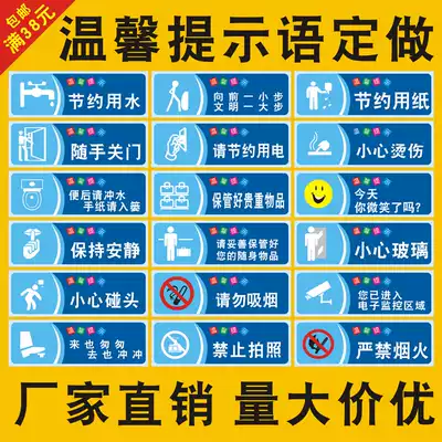 Warm reminder sign toilet slogan Please save water, electricity, paper, toilet prompt language, flush after toilet, be careful with glass warning sticker, close the door, be careful with burns, logo custom-made