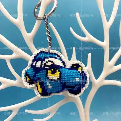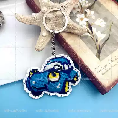 One-piece thread embroidery cross-stitch pendant Thread embroidery key ring with watermark cloth SD614 blue car