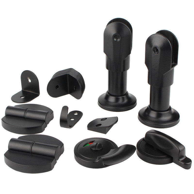 Public Powder Room Partition Accessories Black Stainless Steel Bathroom Set Toilet Partition Hyperlink Partition Set