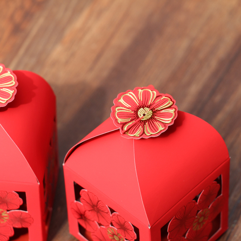 Wedding Delight Items Wedding Happy Sugar Box Hollowed-out Chinese Red Gift Box Candy Packing Box Small Horn Sugar Box