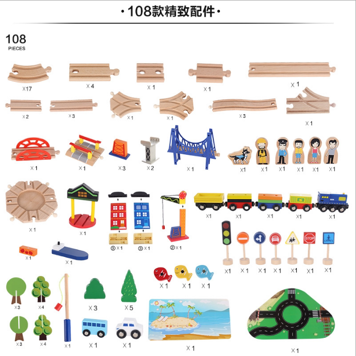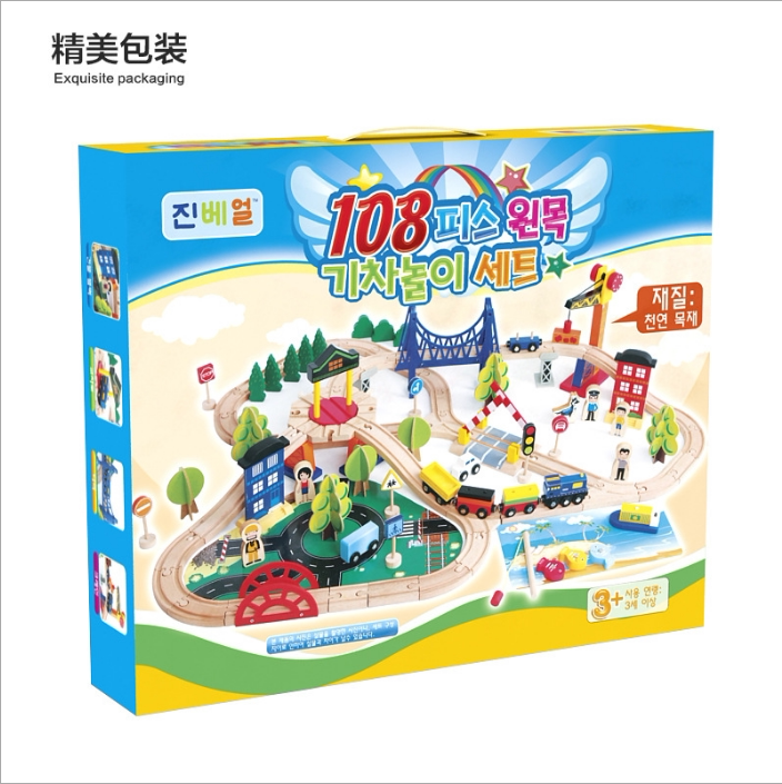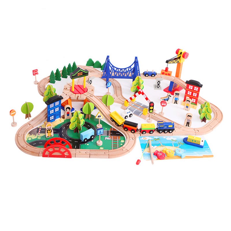 Children's car track assembly building blocks toy set boy and girl puzzle Korean wooden magnetic train track