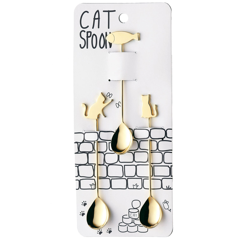 Dynamic cat spoon unsealed unpacked sitting cat spoon unsealed unpacked small fish coffee spoon unsealed unpacked cat fish 3 pieces of conjugal harmony wedding 3 sets of gentlemen 3 pieces