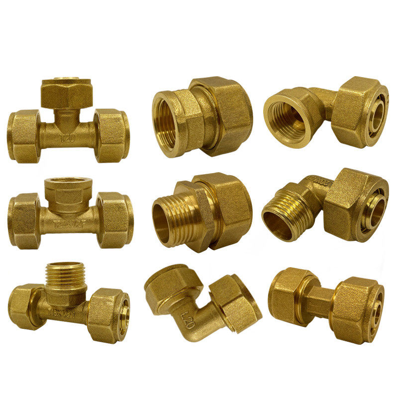 1620 aluminium plastic pipe joint 6 sub-heating sheet floor heating pipe full copper clamping sleeve internal and external wire direct elbow tee fitting