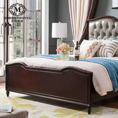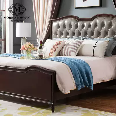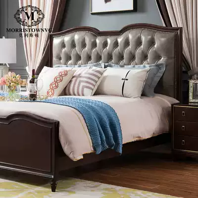 American leather full solid wood bed European neoclassical luxury master bedroom wedding bed retro high-end villa double bed