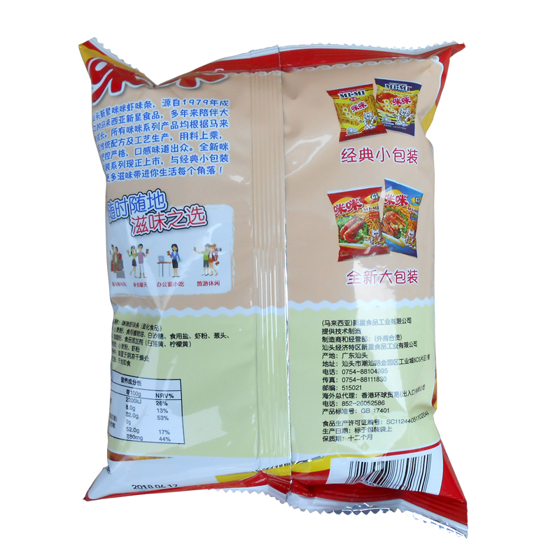 Malaysia Flavor big bag 90g Mimi Shrimp Strips Crab Taste Nets Red Puffed Food Childhood Nostalgia Casual Snacks