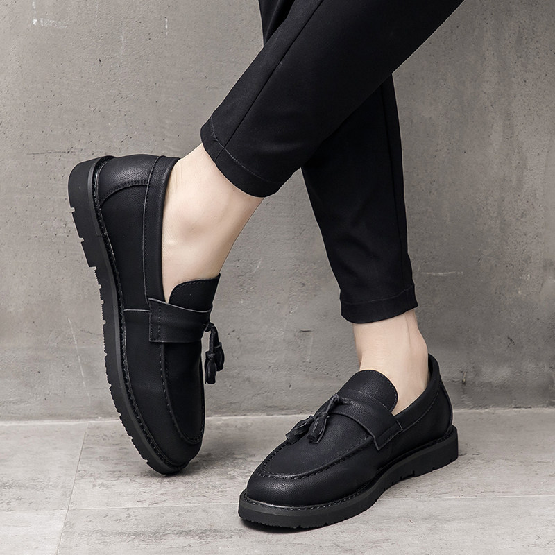 Autumn breathable tide shoes men's beanie shoes men's lazy shoes British Korean version casual leather shoes all-match one-slip men's shoes