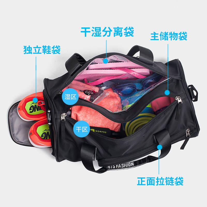 Fitness Bag Men Dry Wet Separation Sports Training Bag Beach Swimming Bag Women Waterproof Hand Single Shoulder Inclined Satchel Cylinder