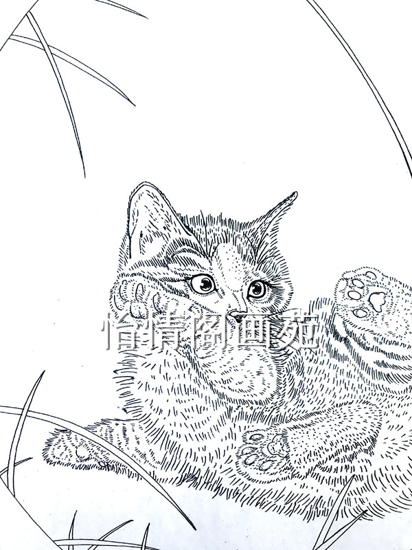 Work Stroke White Sketch Bottom Draft Circular Cat White Sketching Landscape Flower and Bird Animal Line Sketch Painting Manuscript 339