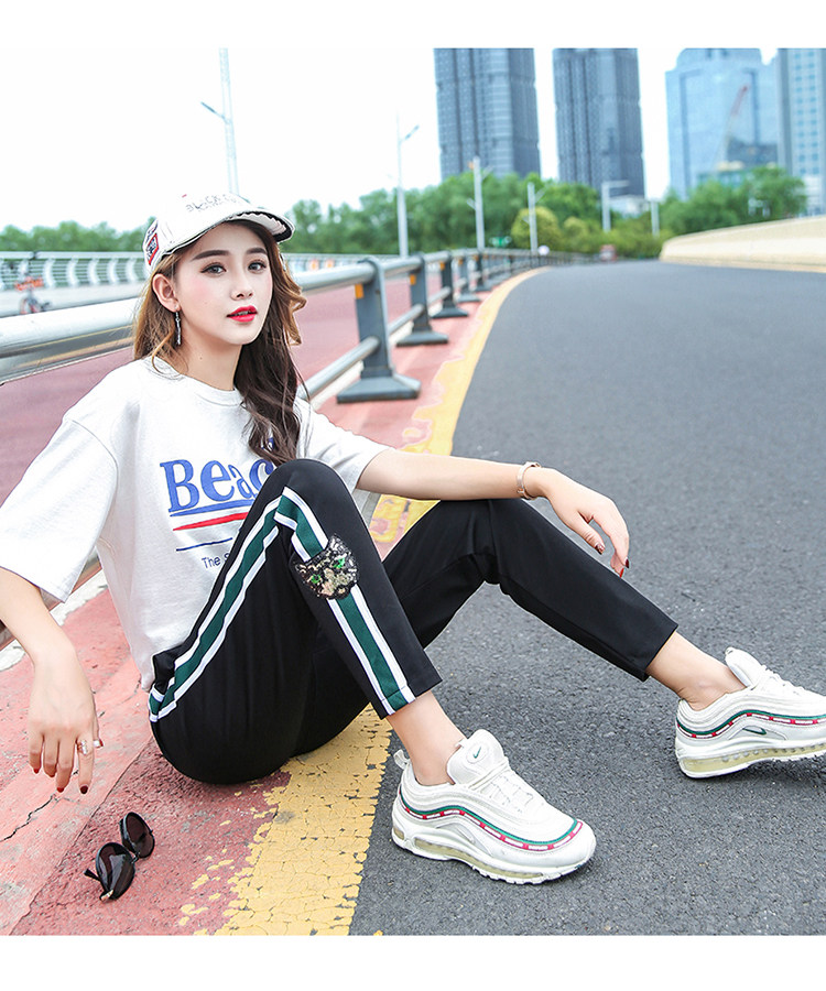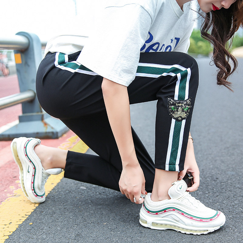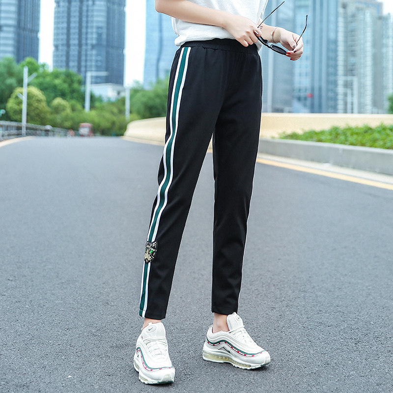 Large size harem pants women's 2022 new summer fat mm loose and thin elastic striped sequin casual sports pants - Taobao