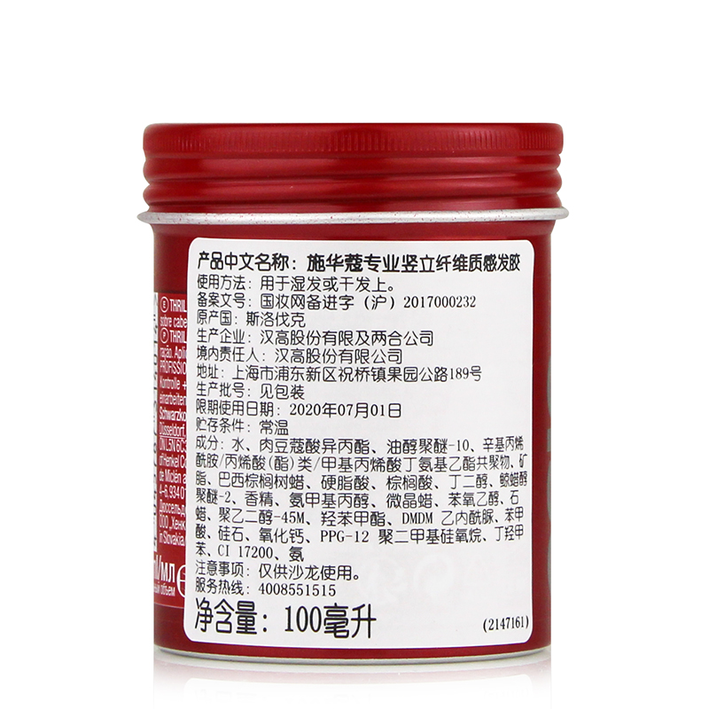 Imported Schwaxom Professional erect fiber texture hair gel 100ml Short hair styling Styled Hair Wax Gel gel
