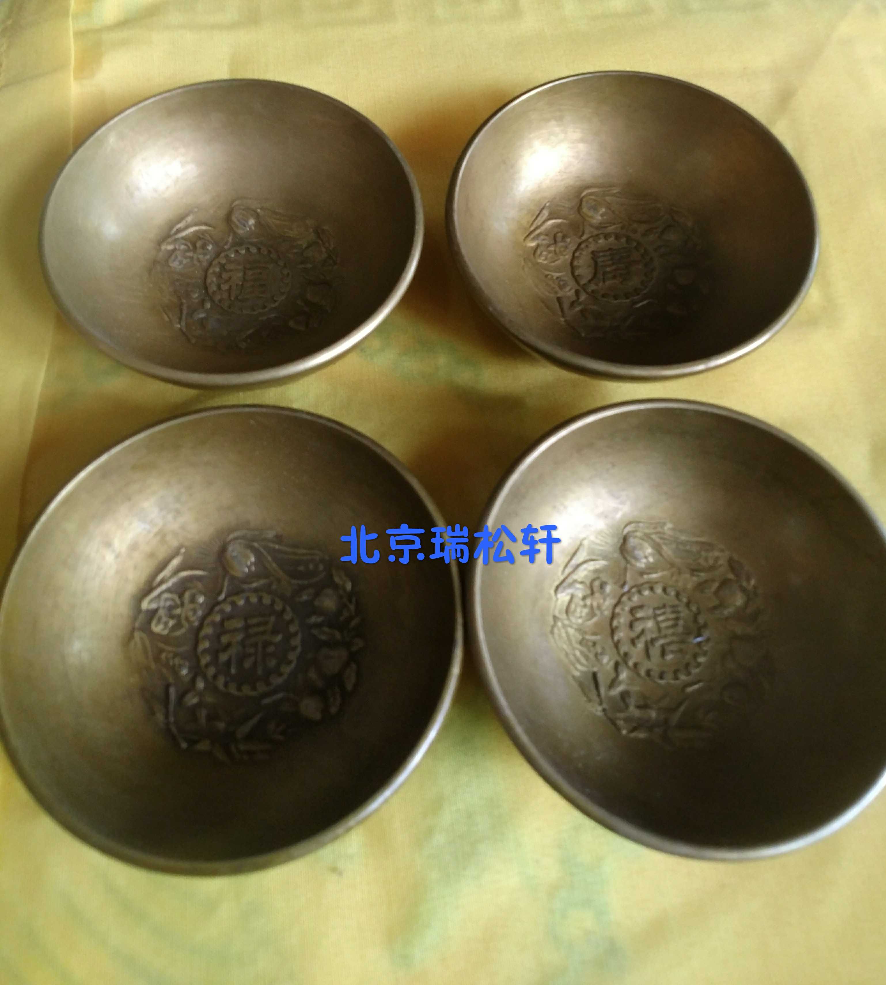 Pure copper small bowl ornaments Fu Lu Shouxi brass bowl medium craft gift ornament ancient stirrup collections to attract wealth and good fortune antiques