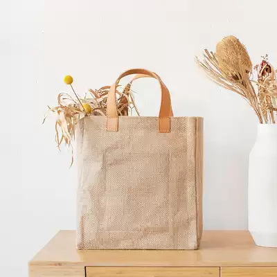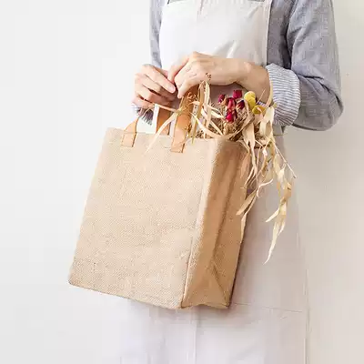 Jute portable large-capacity shopping basket Shopping stationery book Student lunch bag Flower basket handle storage bag