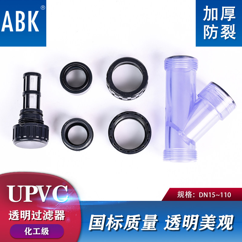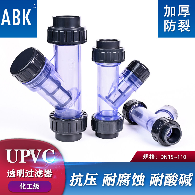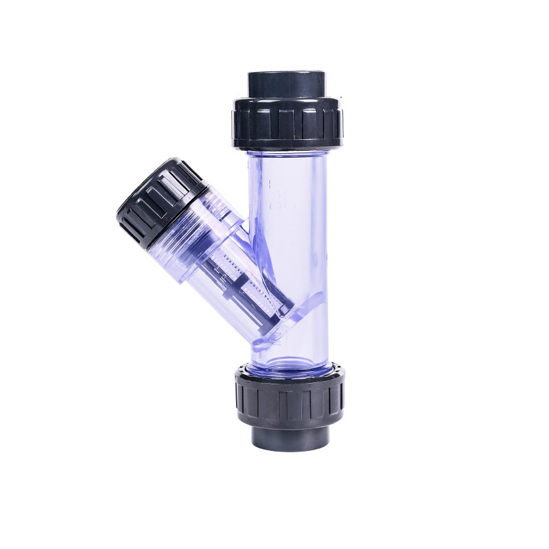 UPVC pipe Y type filter PVC chemical water pipe quick fit transparent plastic filter screen dn25 32 40 65