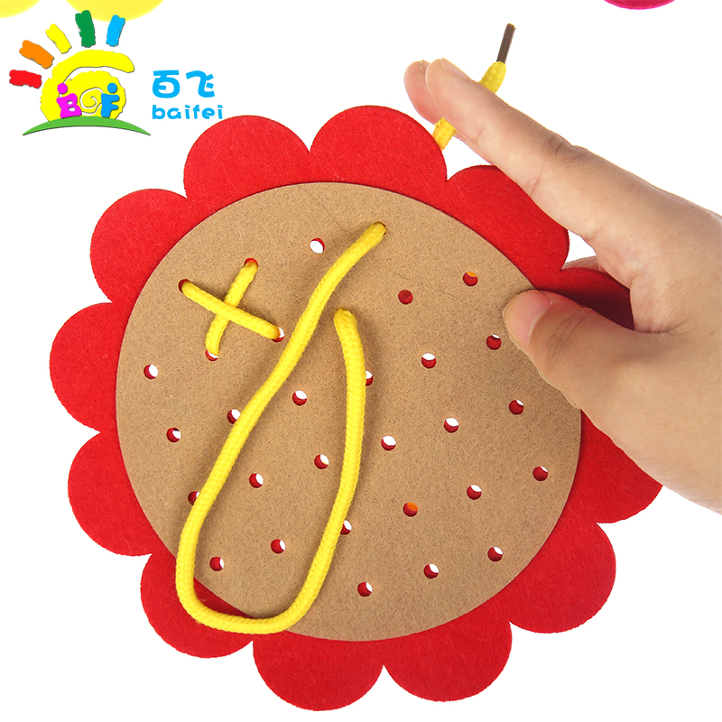Wearing shoes with threading perforation Play in teaching aids unwoven fabrics Handmade Puzzle Games Nursery Area Corner Active Materials