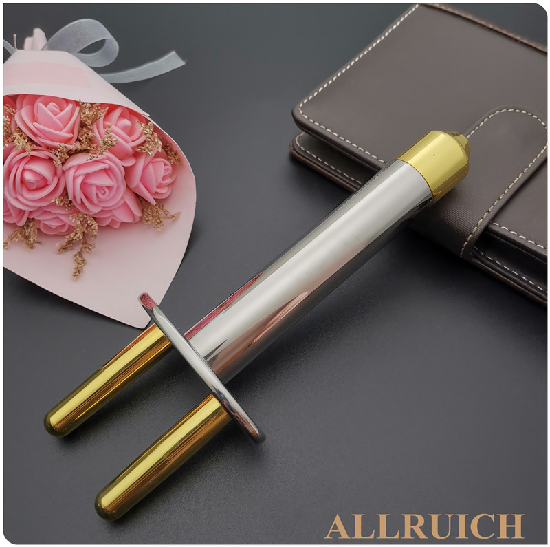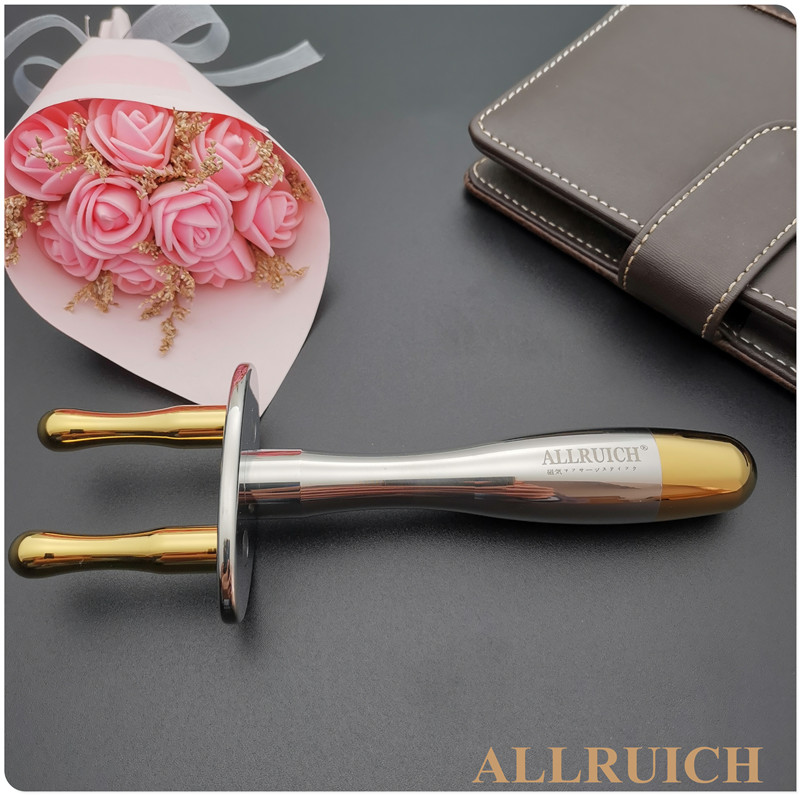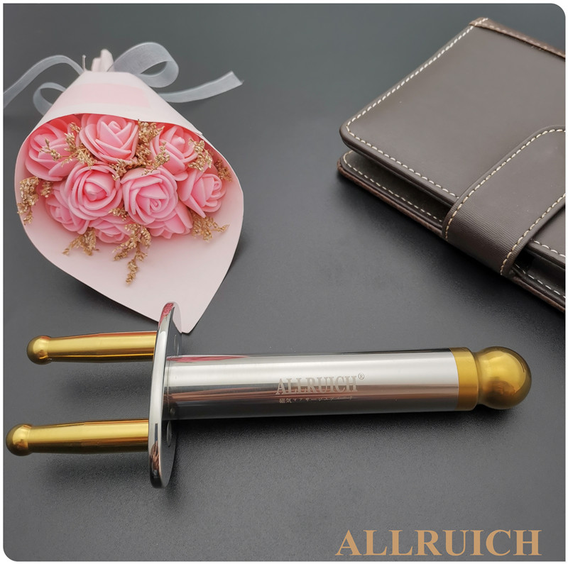 Both ends contain magnetic gold round head 2 fork massage rod with magnetic gold on both ends of two fork massage rod containing magnetic gold small brutal waist 2 fork massage bar