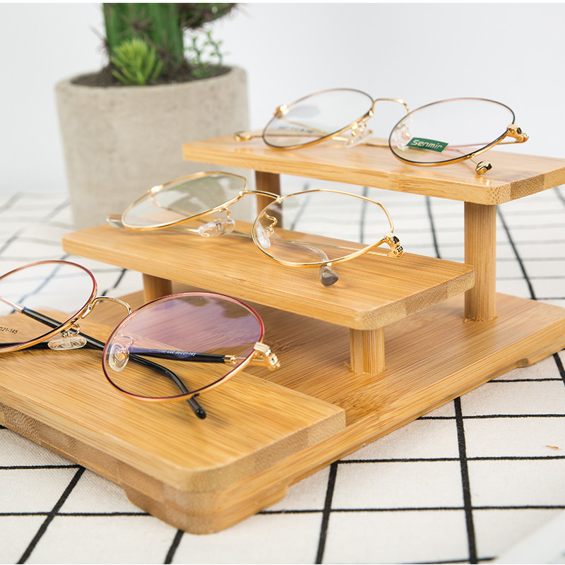 Boutique ladder glasses shop display props display rack multi-layer bamboo and wood display rack counter decorations fast fashion