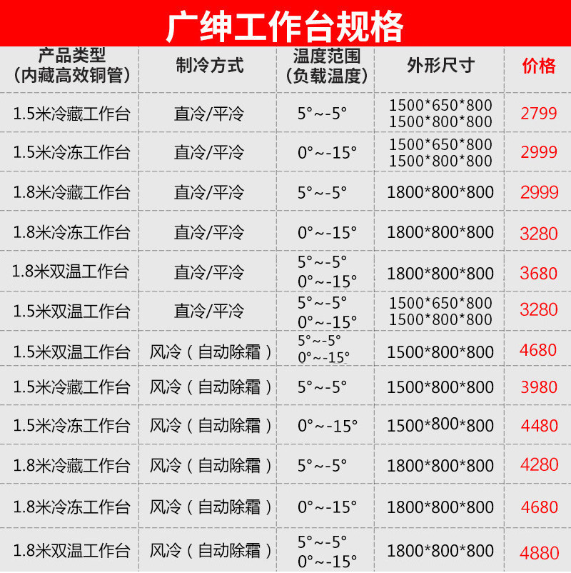 Wide Gentry Refrigeration Bench Frozen Preservation operating table Refrigerator Air-cooled Bench Milk Tea Shop Commercial Kitchen Equipment-Taobao
