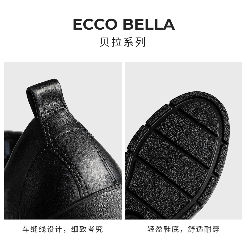 ECCO Love Step Casual Board Shoes Woman Flat-bottomed Lace Single Shoes Board Shoes Leather Shoes Bella 282203