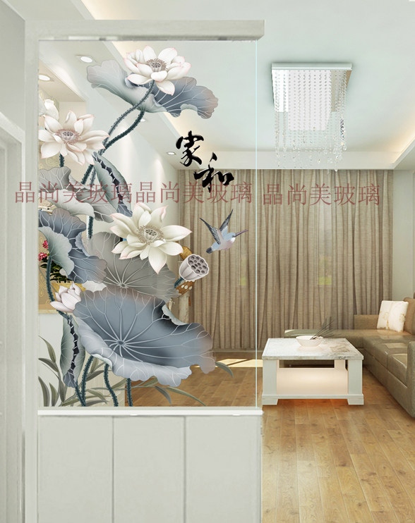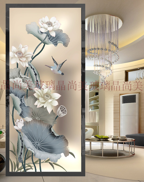 Shanghai Art Glass Xuanguan Partition Wall Screen Solid Deep Sculpture Double-sided Light Transmission Minimalist Style Lotus Bird